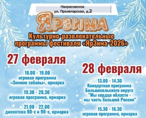 В эти выходные фестиваль ╚ЯрЗима╩ вновь объединит все округа Ярославской области. Проект реализуется благодаря инициативе губернатора Михаила Евраева. Мероприятия в рамках проекта стартуют уже завтра.Интерактивные и игровые программы, встреча со сказочными героями, дискотека, бесплатный каток с прокатом коньков на украшенном зимнем пространстве, выступление гостей из соседних округов, ярмарка.