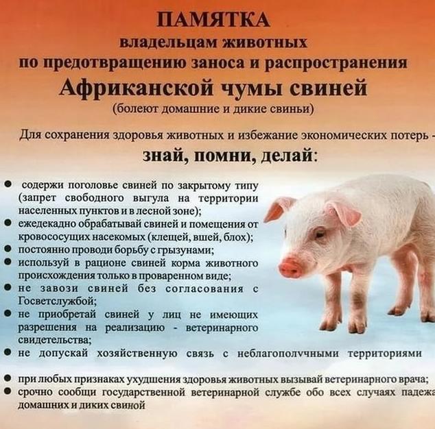 - категорически запрещается вывоз (ввоз) за пределы населенного пункта больных животных или зараженных продуктов и сырья животного происхождения (при регистрации случаев заболевания).