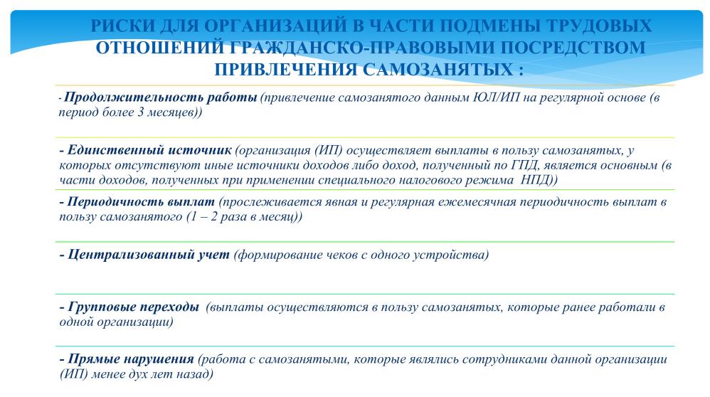 -Наличие фактов или признаков нелегальной занятости, определенных налоговыми органами по результатам проводимой проверки.